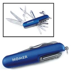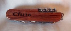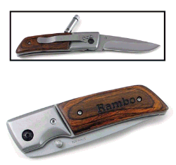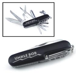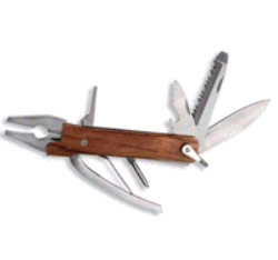 | Similar to a Swiss Army Knife, this multi-purpose pocket knife has 9 tools including a saw blade, cork screw, 2 screw drivers, scissors, bottle opener, knife blade, and a file. The handles are solid redwood and the tools are stainless steel. The tool is 3 1/2" x 3/4" and 6 1/2" long when opened. $14.95 Includes Engraving Item Code: KTLG11 |