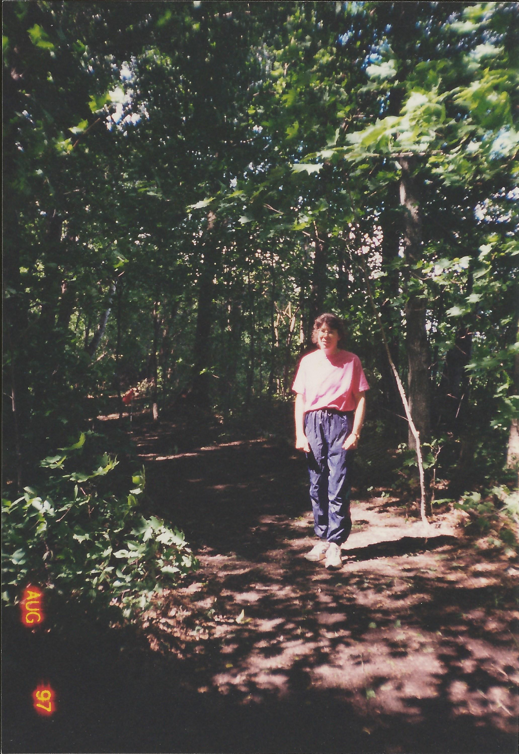 | In 1997, the trails began with five young kids, mom and dad, all grabbing the gloves, rakes, a few hand saws, and starting to clear the way! It was a true family effort initially encouraged by mom and the oldest two girls, Elise and Britta, who were on the Cross Country Running Team for school. That summer and fall, every chance she could, mom (Peg) would spend hours in the ravines clearing away all the small brush, sticks and branches as "therapy". A year and a half earlier, she had been diagnosed with a rare form of lymphoma and was working hard to regain her health and be there for her five children. She felt the energy of the earth surrounding her was so healing and the trails in the ravines were the perfect place to meditate and focus on health.. Everyone all had the goal that someday we would hold a "real" race on the farm trails and mom would be alive to see it. After years of work, and many more trails created, in 2010, that dream became a reality... and mom was indeed there, very alive and well! |